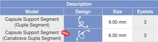 Partial ring of clear PMMA covering approximately one quadrant with a specially designed scleral fixation arm for permanent fixation.