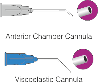 Disposable cannula used for maintaining or forming anterior chamber and irrigating cornea during surgery. It may be used for injection or removal of air, fluids & viscoelastic substances during an ophthalmic surgery.
